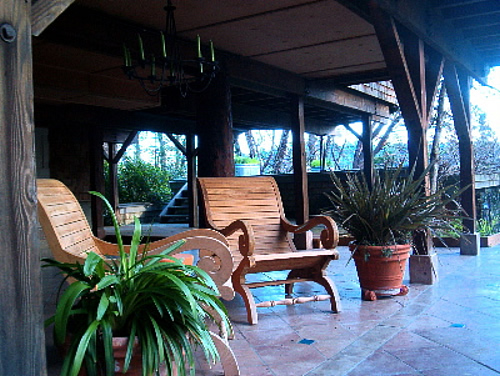 The ground level provides an entry experience passing by a large lily/koi pond stocked with a variety of fish. A separate private entry to a bedroom with its own private bath is at ground level as well as a large covered area for entertainment and kid's play. This private bedroom has beautiful hardwood floors, 180° views of the gardens and the koi pond and opens to the covered tile veranda. This level also connects to a 450 square foot container landscaped deck over the garage.