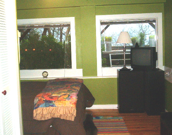 The fourth level is the third bedroom with a Pullman type bath and beautiful wood windows on three sides. The light-filled room could also be used as an art or sewing studio.