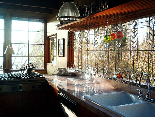 from all rooms and to minimize lot coverage. The home is modern yet has a